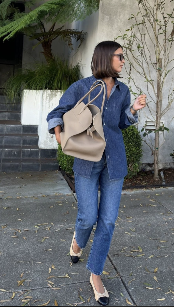 A classic button down is a timeless choice. The classic denim on denim combination makes any simple outfit look effortlessly put together.
